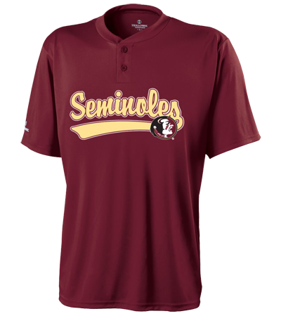 Design your Florida State Baseball Jerseys at CustomPlanet.com. Use our athletic fonts to add names and numbers. Your team can look like the Seminoles college players do! This jersey is made from Dry-Excel™ fresh micro-interlock polyester. Semi fitted performance product with wicking and Odor Resistant properties. Two-button placet and matching, self-fabric collar. Decorated with college replica logos for youth team sports. Team Sales Only! "
