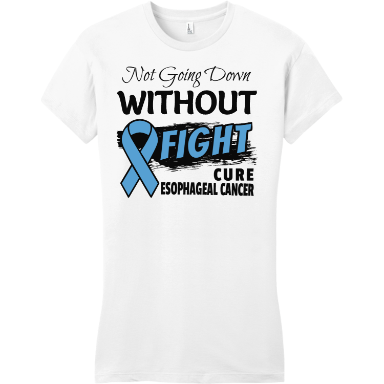 Create printed esophageal cancer t shirts online. Custom printed T-Shirts are a great way to unite your team or bring awareness to a great cause. Best of all, when you order with Create A Shirt, you get access to tons of fonts, full visibility tracking, and you can order a sample before you place a big order. This Junior's T-Shirt is manufactured by District Threads, and is made with 100% ring spun combed Cotton.