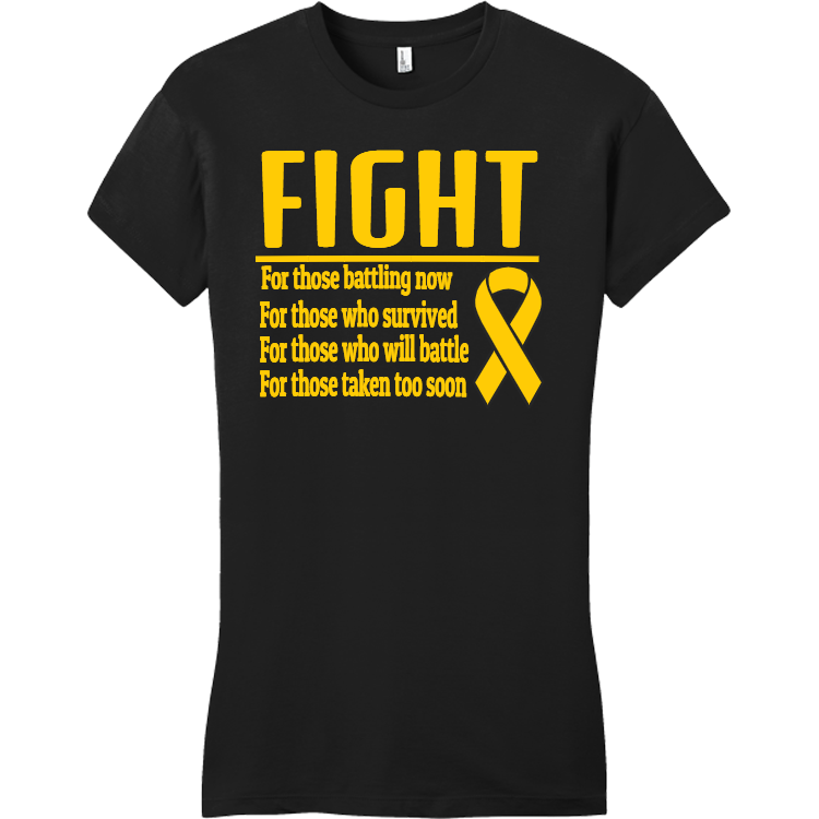 Order custom printed Fight For Those Battling Now For Those Who Survived For Those Who Will Battle For Those Taken Too Soon - Cancer Awareness T-shirt Design Cancer Awareness T-Shirts Online. Customized Cancer Awareness T-Shirts are a great way to unite your team and/or bring awareness to a great cause.