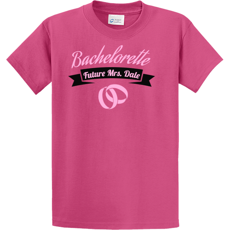 Buy screen printed Bachelorette Future Mrs. Dale - Bachelorette Party T-shirt Design Bachelorette Party T-Shirts Online. Printed Bachelorette Party T-Shirts are a great way to create a memorable event and/or grab attention.