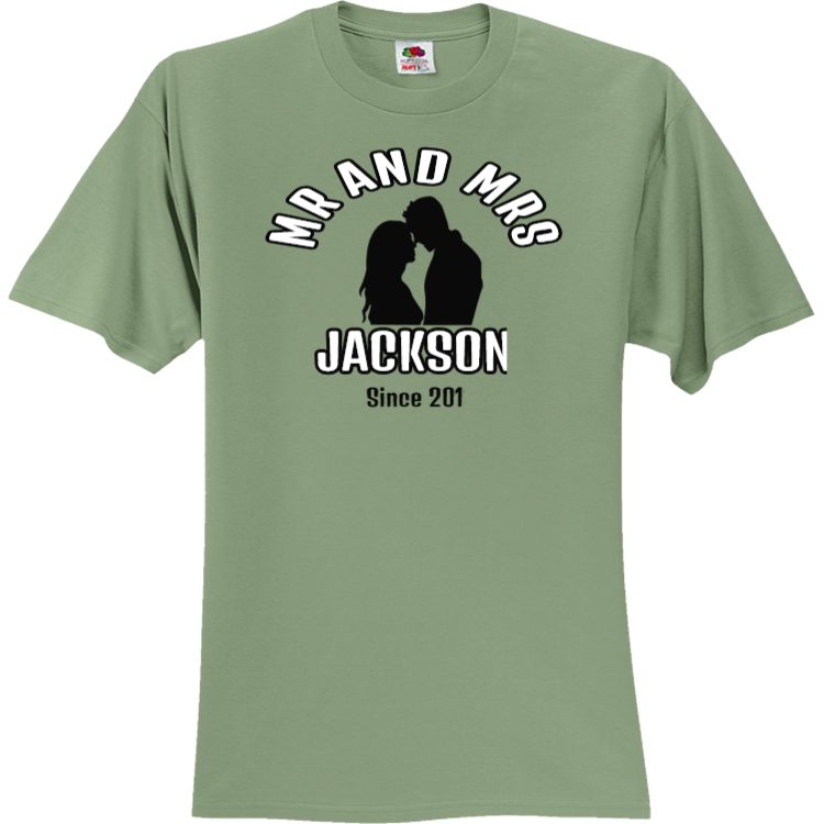 Buy customized Mr And Mrs Since Jackson - Wedding T-shirt Design Wedding T-Shirts Online. Screen printed Wedding T-Shirts are the perfect gift for the squad or remembering your special day.