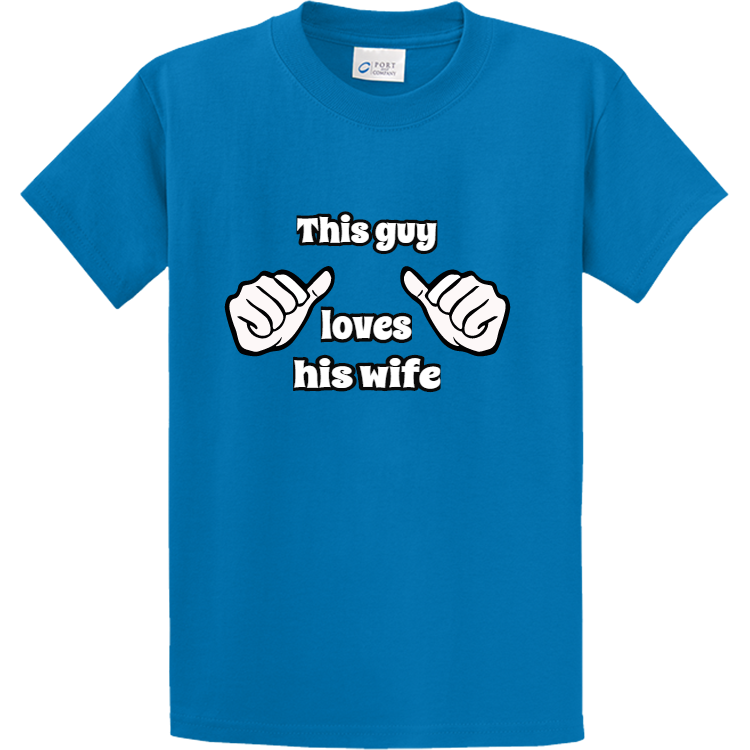 Design your own screen printed This Guy Loves His Wife - Wedding T-shirt Design Wedding T-Shirts Online. Custom printed Wedding T-Shirts are the perfect gift for remembering your special day and the squad.