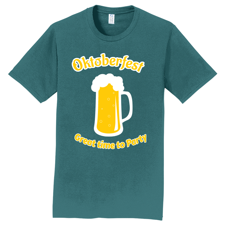 Create custom printed oktoberfest t shirt t-shirts online. Custom printed oktoberfest t-shirts are a fun way to rep your drinking team or remember the occasion. Best of all, when you order with Create A Shirt, you get to upload your logo, get help with artwork and before you place a big order, you can order a sample. This Adult Men's T-Shirt is manufactured by Port and Company, and is made with 100% 4.5-ounce Cotton. These shirts even have a removable tag for comfort and relabeling.
