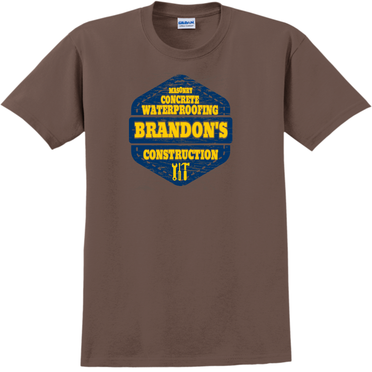 Design screen printed Brandon's Construction Concrete Masonry Waterproofing - Construction T-shirt Design Construction T-Shirts Online. Custom printed Construction T-Shirts are a great way to show your pride and keep track of your workers.