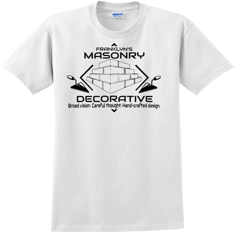 Design and order printed Franklyn's Masonry Decorative Broad Vision - Construction T-shirt Design Construction T-Shirts Online. Customized Construction T-Shirts are a great way to keep track of your workers or show your pride.