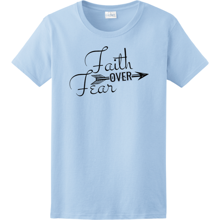 Design yourself some custom printed Faith Fear Over - Christian T-shirt Design Christian T-Shirts Online. Screen printed Christian T-Shirts are perfect for your bible camp or outreach ministry.