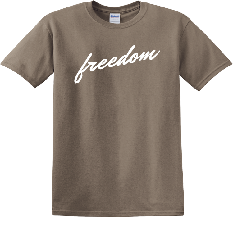 Order screen printed freedom t-shirts online. Printed christian t-shirts are perfect for your youth group event or your bible camp. Best of all, when you order with Create A Shirt, you get an easy online designer, full visibility tracking, and there are no minimum orders. This t-shirts is manufactured by gildan, and made with 100% cotton.