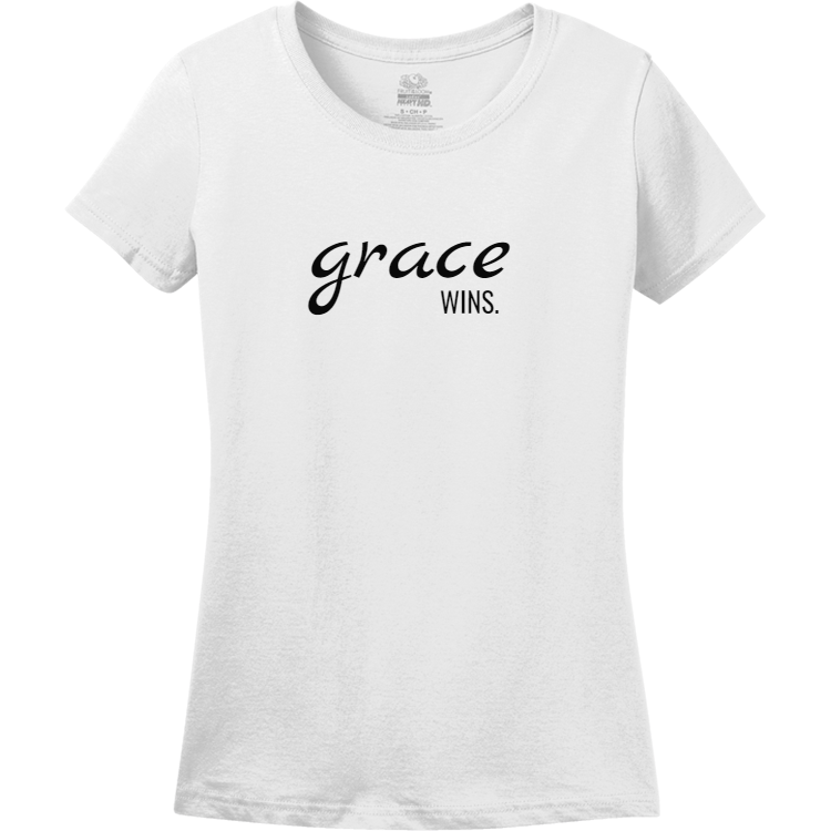 Order screen printed grace wins t-shirts online. Printed christian T-shirts are perfect for your youth group event or your bible camp. Best of all, when you order with Create A Shirt, you get an easy online designer, full visibility tracking, and there are no minimum orders. This T-shirts is manufactured by fruit of the loom, and made with 100% cotton.
