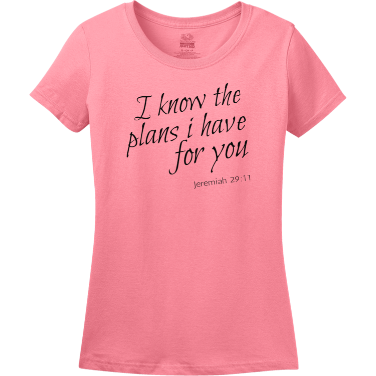 Order screen printed i know the plans i have for you t-shirts online. Printed christian T-shirts are perfect for your youth group event or your bible camp. Best of all, when you order with Create A Shirt, you get an easy online designer, full visibility tracking, and there are no minimum orders. This T-shirts is manufactured by fruit of the loom, and made with 100% cotton.