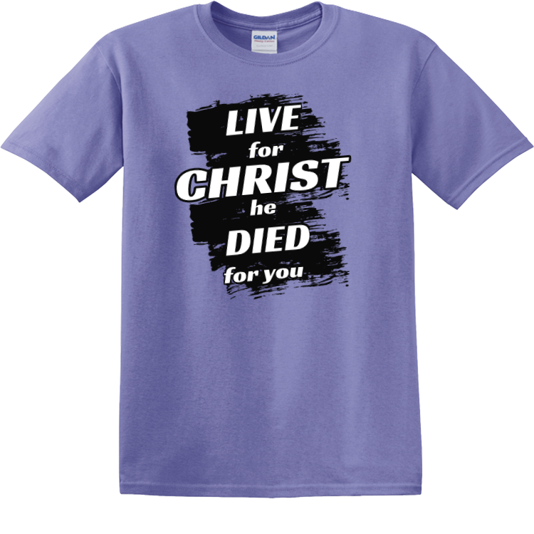 Create custom printed Live For Christ He Died For You - Christian T-shirt Design Christian T-Shirts Online. Printed Christian T-Shirts are perfect for your youth group event and outreach ministry.