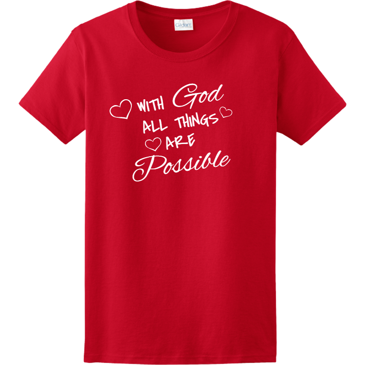 Create customized With God all things are possible - Christian T-shirts Design Christian T-Shirts Online. Printed Christian T-Shirts are perfect for your bible camp and/or outreach ministry.