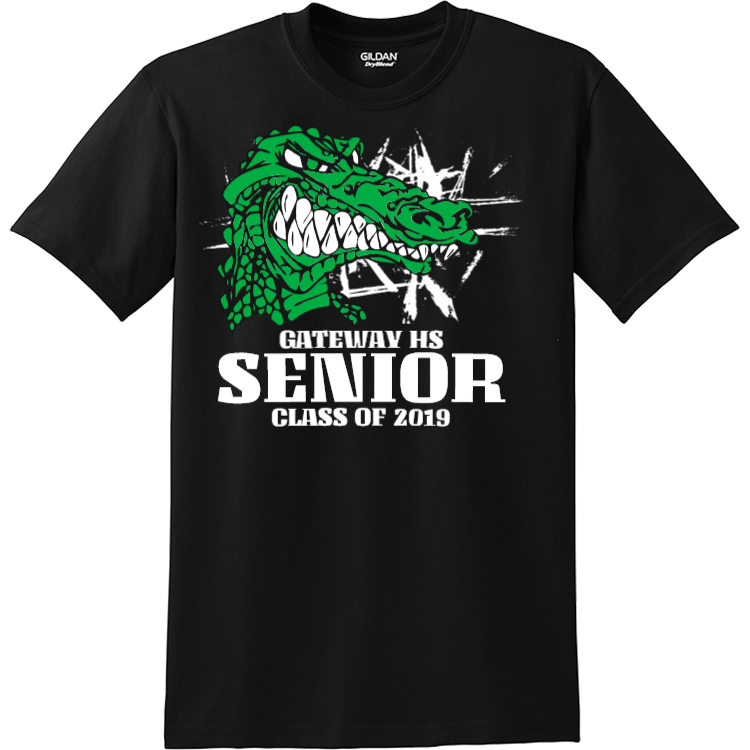 Order screen printed gateway senior 2019 t-shirts online. Printed senior class pride t-shirts are the best way to show them who's boss or end your high school career. Best of all, when you order with Create A Shirt, you get an easy online designer, full visibility tracking, and there are no minimum orders. This t-shirts is manufactured by gildan, and made with 100% cotton.