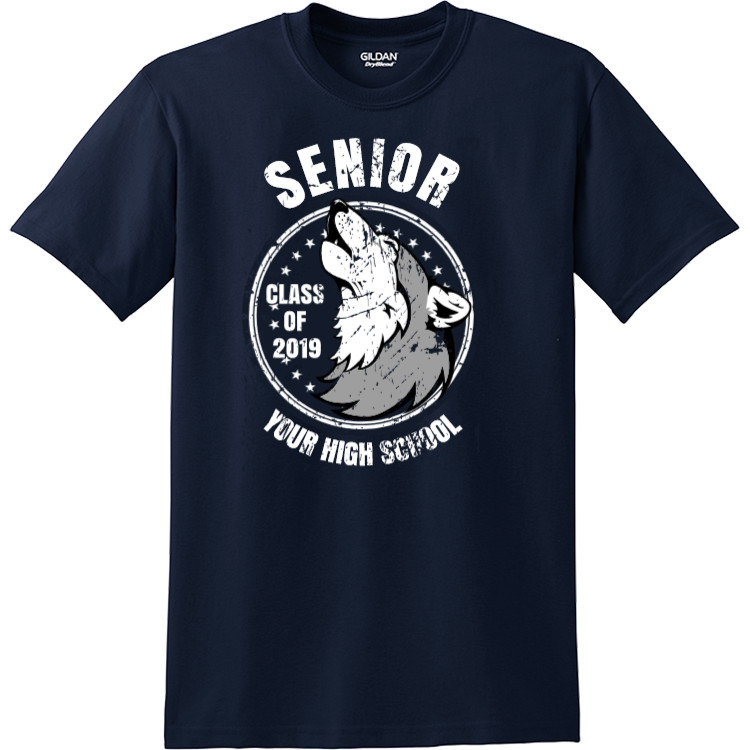 Order screen printed senior 2019 t-shirts online. Printed senior class pride t-shirts are the best way to show them who's boss or rep your school. Best of all, when you order with Create A Shirt, you get an easy online designer, full visibility tracking, and there are no minimum orders. This t-shirts is manufactured by gildan, and made with 100% cotton.