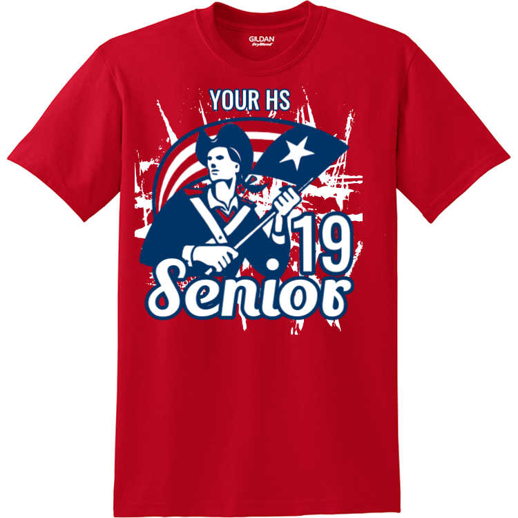Order screen printed senior 2019 t-shirts online. Printed senior class pride t-shirts are the best way to end your high school career or rep your school. Best of all, when you order with Create A Shirt, you get an easy online designer, full visibility tracking, and there are no minimum orders. This t-shirts is manufactured by gildan, and made with 100% cotton.