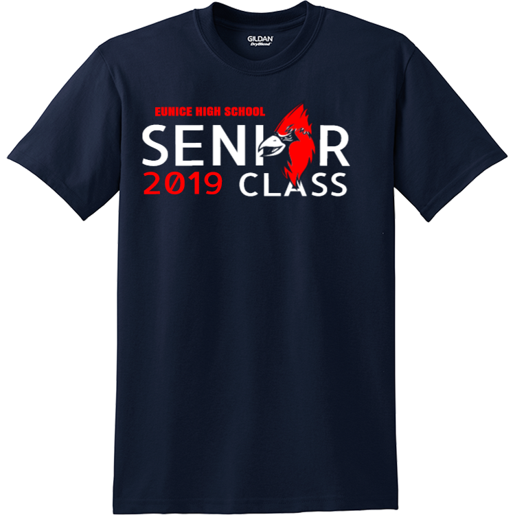 Order screen printed senior T-shirts online. Printed senior class pride t-shirts are the best way to rep your school or end your high school career. Best of all, when you order with Create A Shirt, you get an easy online designer, full visibility tracking, and there are no minimum orders. This t-shirts is manufactured by gildan, and made with 100% cotton.