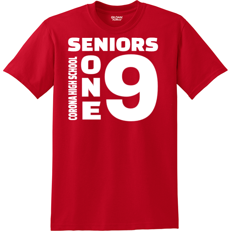 Order screen printed senior T-shirts online. Printed senior class pride t-shirts are the best way to rep your school or end your high school career. Best of all, when you order with Create A Shirt, you get an easy online designer, full visibility tracking, and there are no minimum orders. This t-shirts is manufactured by gildan, and made with 100% cotton.