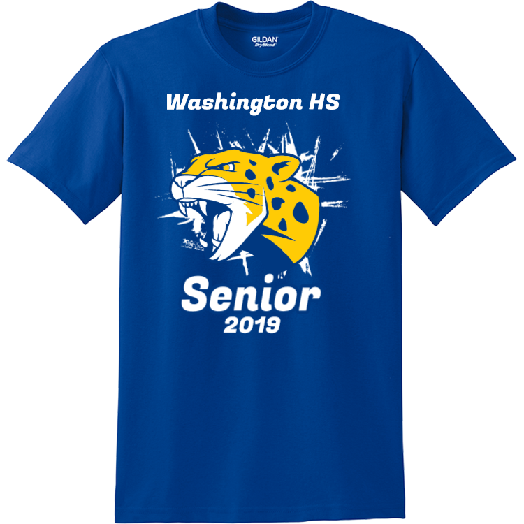 Order screen printed washington hs senior 2019 t-shirts online. Printed senior class pride t-shirts are the best way to end your high school career or rep your school. Best of all, when you order with Create A Shirt, you get an easy online designer, full visibility tracking, and there are no minimum orders. This t-shirts is manufactured by gildan, and made with 100% cotton.