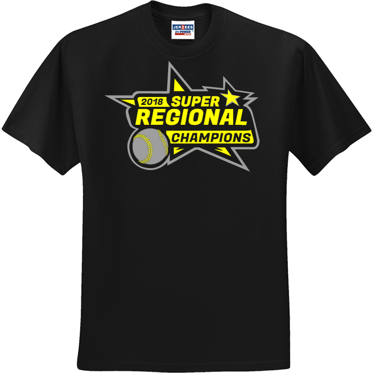 Buy screen printed Super Regional Baseball Champions Baseball T-Shirts Online. Customized Baseball T-Shirts are a great way to rock some spirit and rep your squad.