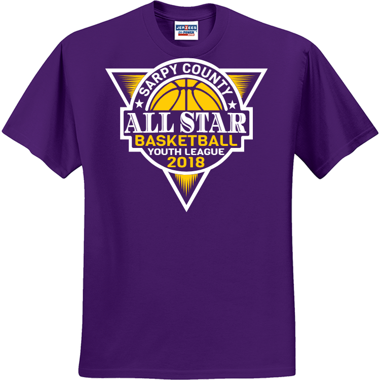 Buy customized Sarpy County All Star Basketball Youth League - Basketball T-shirt Design Basketball T-Shirts Online. Screen printed Basketball T-Shirts are the way to rock your squad and show your spirit.