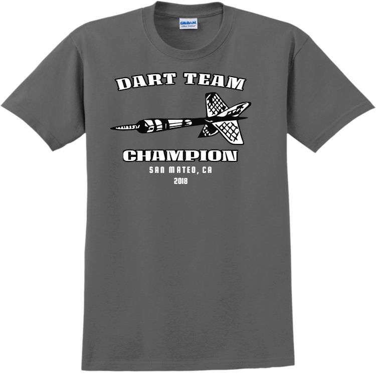 Create screen printed Dart Team Champion San Mateo, Ca 2018 - Darts T-shirt Design Darts T-Shirts Online. Custom printed Darts T-Shirts are fun to or rep your team.