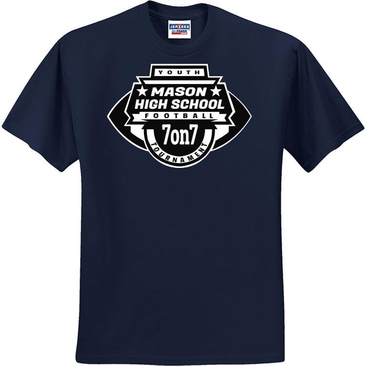 Order screen printed Youth 7on7 Football Tournament T-shirts online. Printed 7on7 football t-shirts are great for your high school tournament or club tournament. Best of all, when you order with Create A Shirt, you get an easy online designer, full visibility tracking, and there are no minimum orders. This t-shirts is manufactured by jerzees, and made with 50/50 cotton/poly.