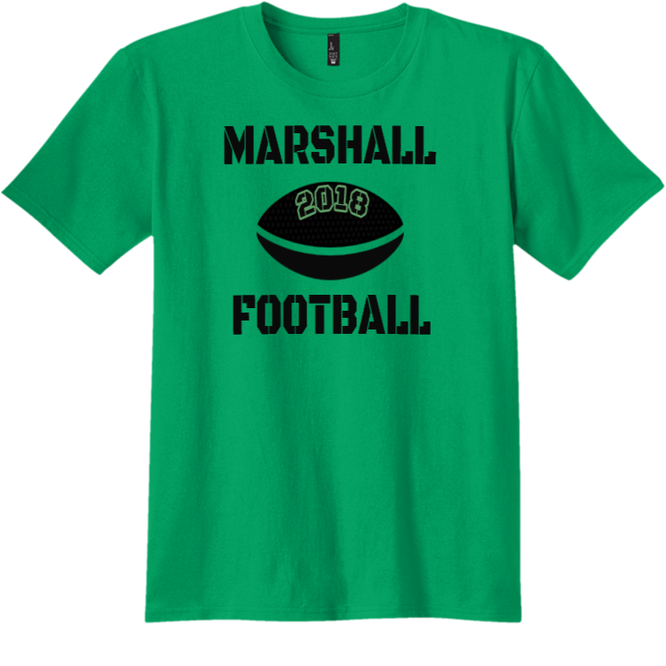 Design your very own screen printed marshall football online! Printed football t-shirts are a great way create camaraderie. Best of all, when you order with Create A Shirt, you get access to tons of fonts, you can order just one and rush delivery is available. This Adult T-Shirt is manufactured by District Threads and made with 100% Cotton.