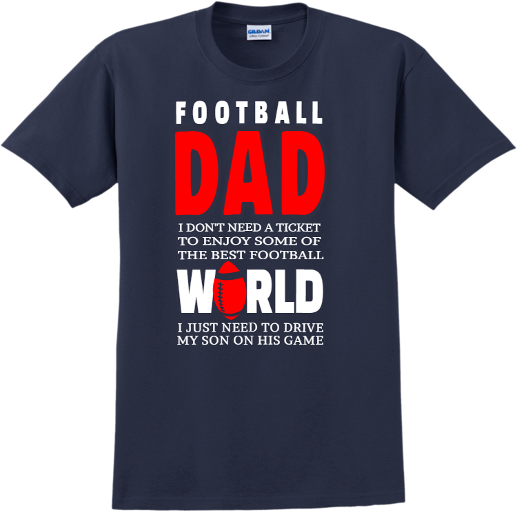 Order screen printed football i don't need a ticket dad to enjoy some of the best football w i just need to drive my son on his game rld t-shirts online. Printed fanwear t-shirts or . Best of all, when you order with Create A Shirt, you get an easy online designer, full visibility tracking, and there are no minimum orders. This t-shirts is manufactured by gildan, and made with 100% cotton.