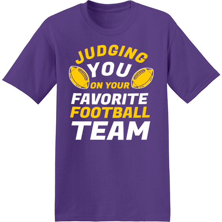 Order screen printed judging you on your favorite football team t-shirts online. Printed fanwear t-shirts or . Best of all, when you order with Create A Shirt, you get an easy online designer, full visibility tracking, and there are no minimum orders. This t-shirts is manufactured by hanes, and made with 100% cotton.