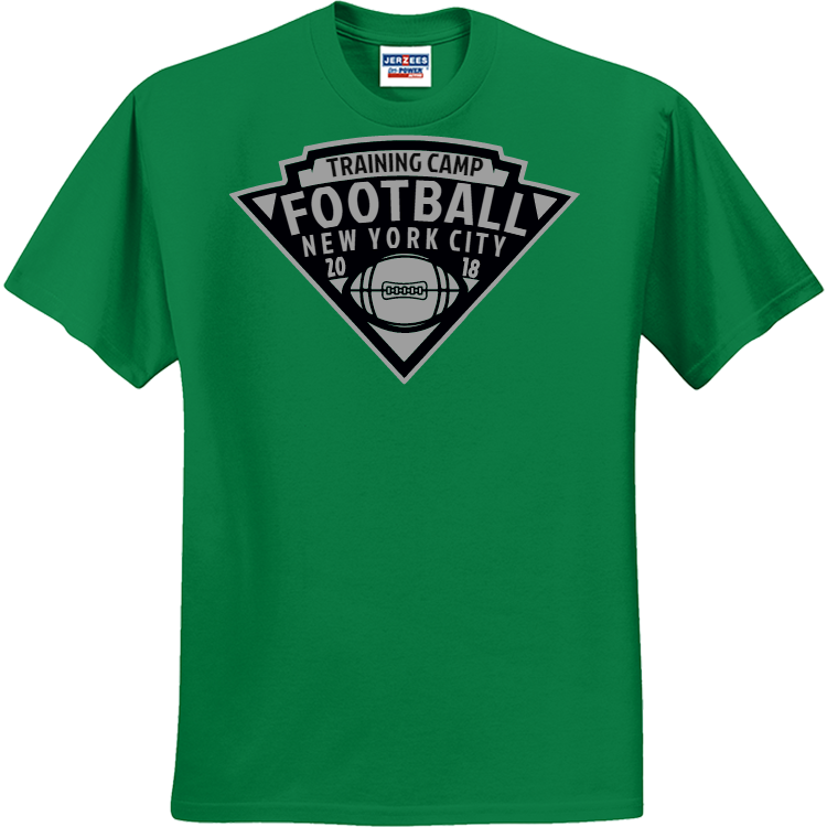 Order screen printed football camp T-shirts online. Printed teamwear t-shirts are great to wear after the championship game or represent your school. Best of all, when you order with Create A Shirt, you get an easy online designer, full visibility tracking, and there are no minimum orders. This t-shirts is manufactured by jerzees, and made with 50/50 cotton/poly.