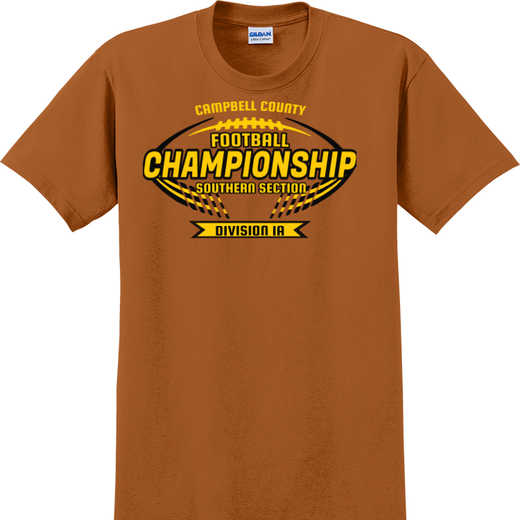 Order screen printed football championship southern section t-shirts online. Printed teamwear t-shirts are great to wear after the championship game or show your school spirit. Best of all, when you order with Create A Shirt, you get an easy online designer, full visibility tracking, and there are no minimum orders. This t-shirts is manufactured by gildan, and made with 100% cotton.
