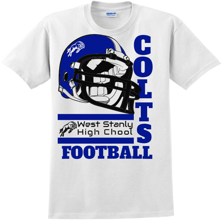 Order screen printed indianapolis c o l t s west stanly high chool t-shirts online. Printed teamwear t-shirts are great to wear after the championship game or show your school spirit. Best of all, when you order with Create A Shirt, you get an easy online designer, full visibility tracking, and there are no minimum orders. This t-shirts is manufactured by gildan, and made with 100% cotton.
