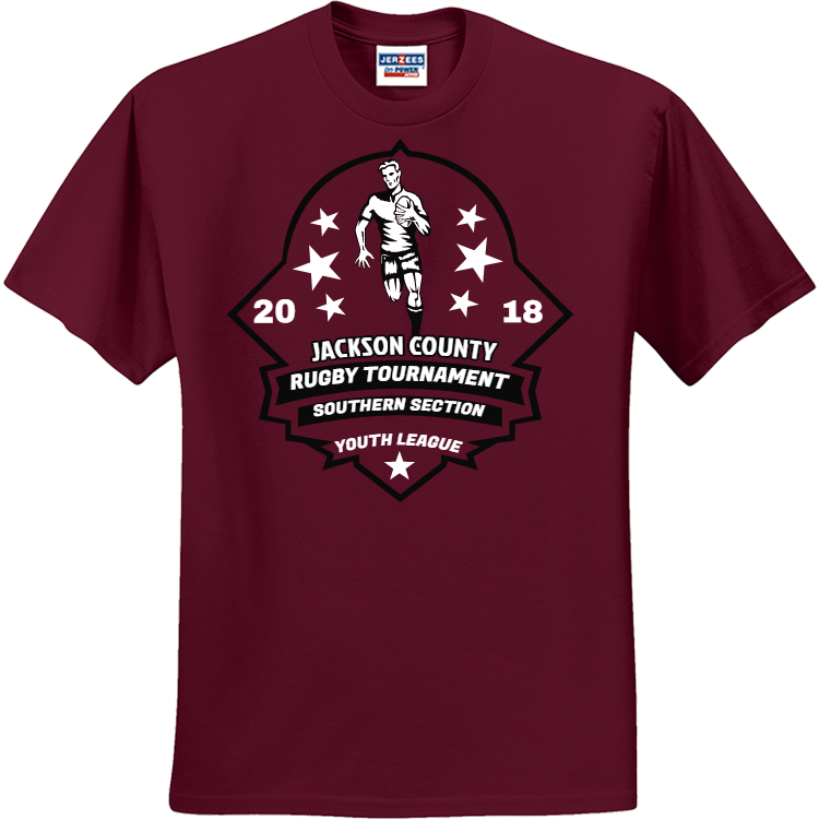 Design your own customized Jackson County Rugby Tournament Southern Section Youth League - Rugby T-shirt Design Rugby T-Shirts Online. Screen printed Rugby T-Shirts are the best way to and/or let your rival know who the champions are.