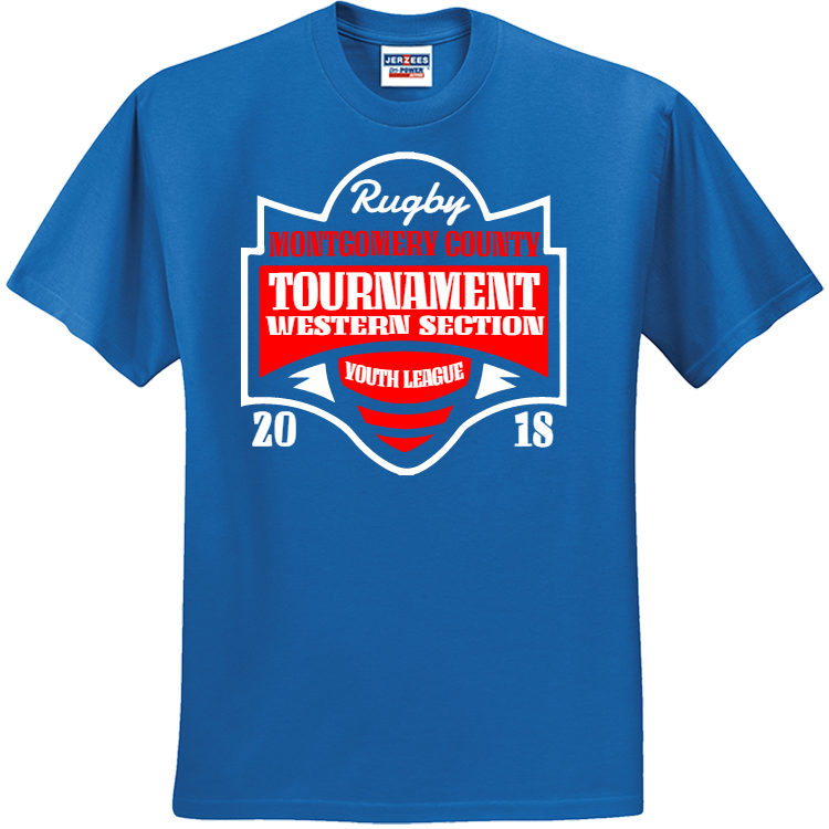 Design custom printed Montgomery County Rugby Tournament Western Section Youth League - Rugby T-shirt Design Rugby T-Shirts Online. Printed Rugby T-Shirts are the best way to and show who's on the team.
