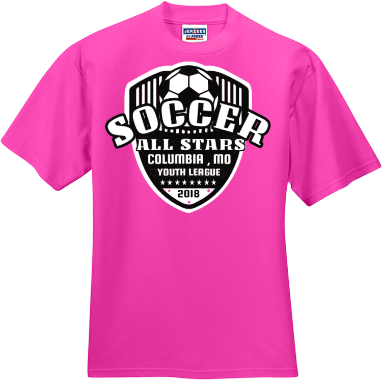 Design yourself some customized All Stars Soccer Columbia , Mo Youth League Soccer T-Shirts Online. Screen printed Soccer T-Shirts are the best way to represent your team and/or show them who the champs are.