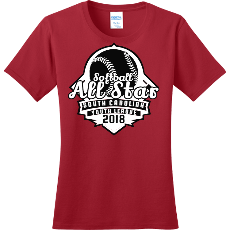 Design your own custom printed All Star Softball South Carolina Youth League - Softball T-shirt Design Softball T-Shirts Online. Printed Softball T-Shirts are great when you want to offset those tournament fees or rep your squad.