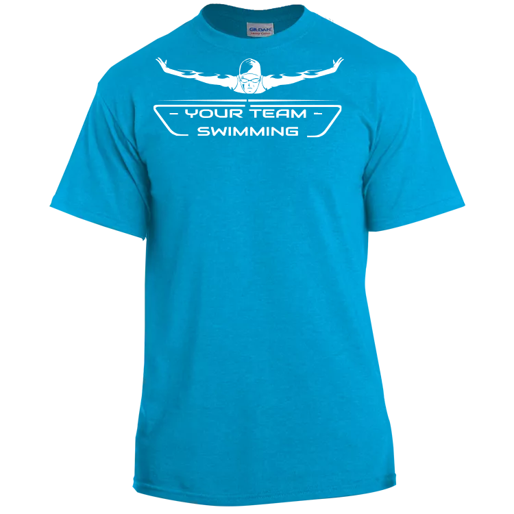 Order custom printed Swimming Team - Swimming T-shirt Design Swimming T-Shirts Online. Screen printed Swimming T-Shirts are great to dry off with when you don't have a towel and/or wear to the swim meet.