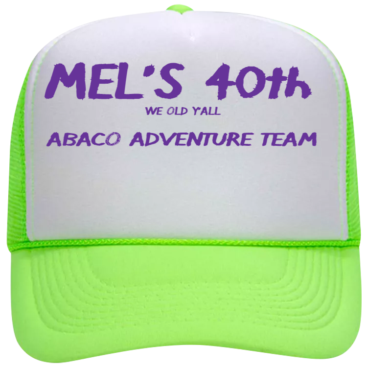 ABACO ADVENTURE TEAM MELS 40th WE OLD YALL Neon Trucker Hat Otto Cap