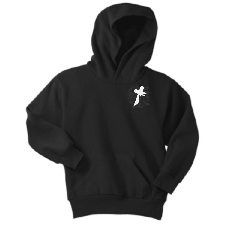 This cozy and comfortable hoody is made with 7.8-ounce 50/50 cotton/poly fleece. It features a two-ply hood without the pesky drawcord. It's also made with set-in sleeves and a front pouch pocket to keep the kids hands warm on the field.