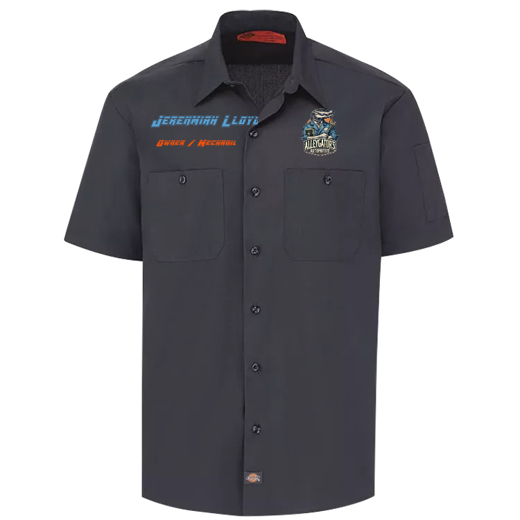 Owner Mechanic Jeremiah Lloyd Jerenmiah Lloyd Design Your Own Custom Printed Mechanic Shirt | Mens Dickies Mechanic Shirt S608