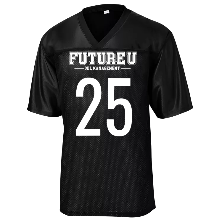 Order mens replica football jerseys. This replica football jersey is perfect to wear and support your junior all american football player or for your flag football team. You can design it online. Just upload your logo or name and number and we do the rest. Use our team tool to upload your roster for easy team ordering. Need help with artwork? Just upload it to our contact us page. We offer $5 shipping, volume discounts and no minimums!